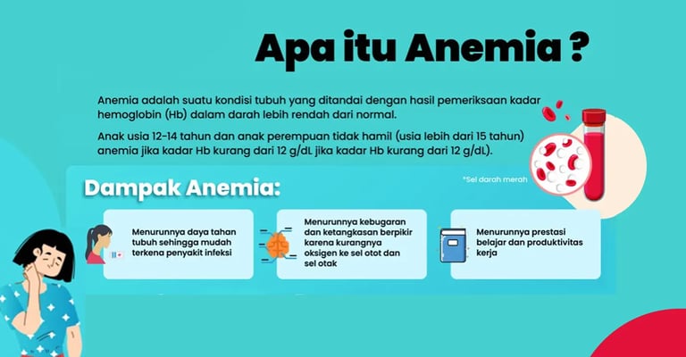 Anemia pada remaja putri berdampak serius, seperti gangguan kognitif, penurunan daya tahan tubuh, dan kelelahan fisik yang memengaruhi aktivitas serta prestasi belajar. Jika berlanjut hingga kehamilan, anemia meningkatkan risiko komplikasi seperti pertumbuhan janin terhambat (PJT), Berat Badan Lahir Rendah (BBLR), stunting, perdarahan saat persalinan, serta kematian bayi.